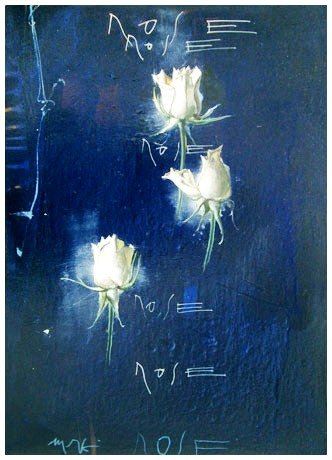 MARIO MADIAI Livorno 1944 Rose Olio su tela 50 x 35. Firma in b. a s., titolo in b. al c.; firma sul verso.