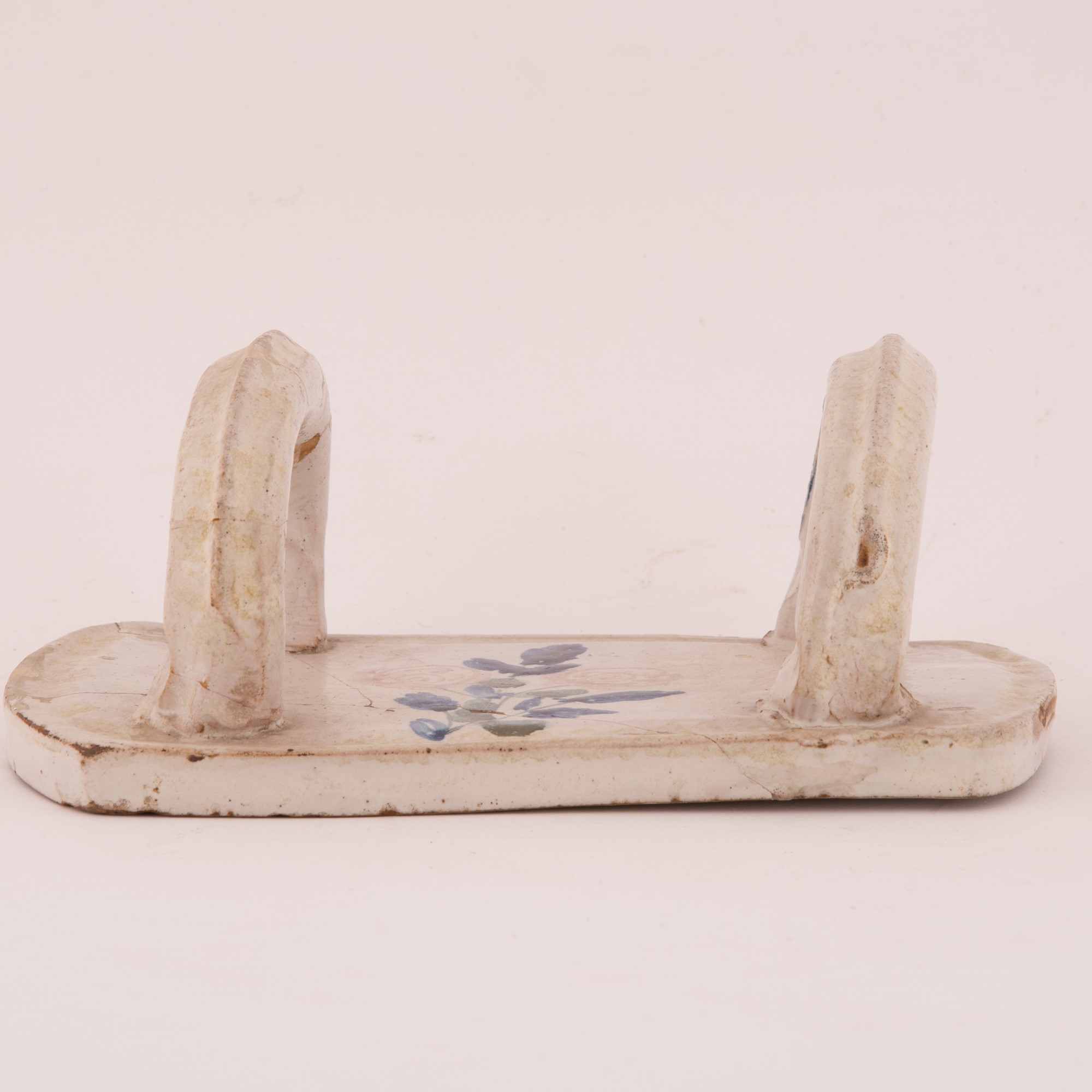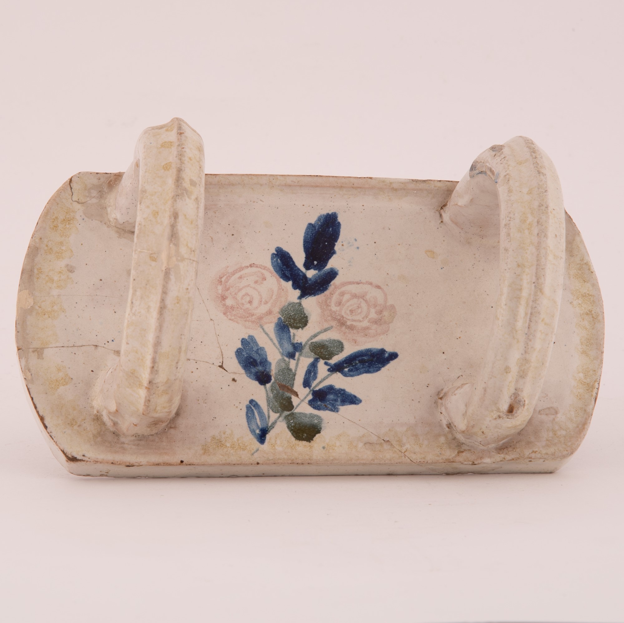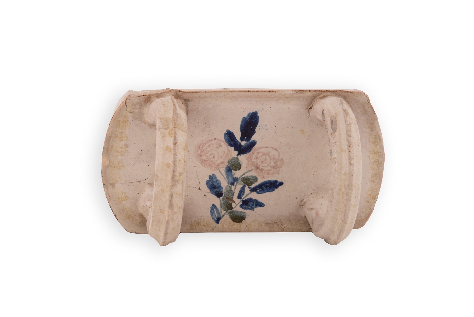 Manifattura abruzzese attiva tra il tardo XIX ed i primi del XX secolo. ( - ) Schiacciapatate in maiolica con decoro floreale stilizzato cm 7x20x11