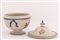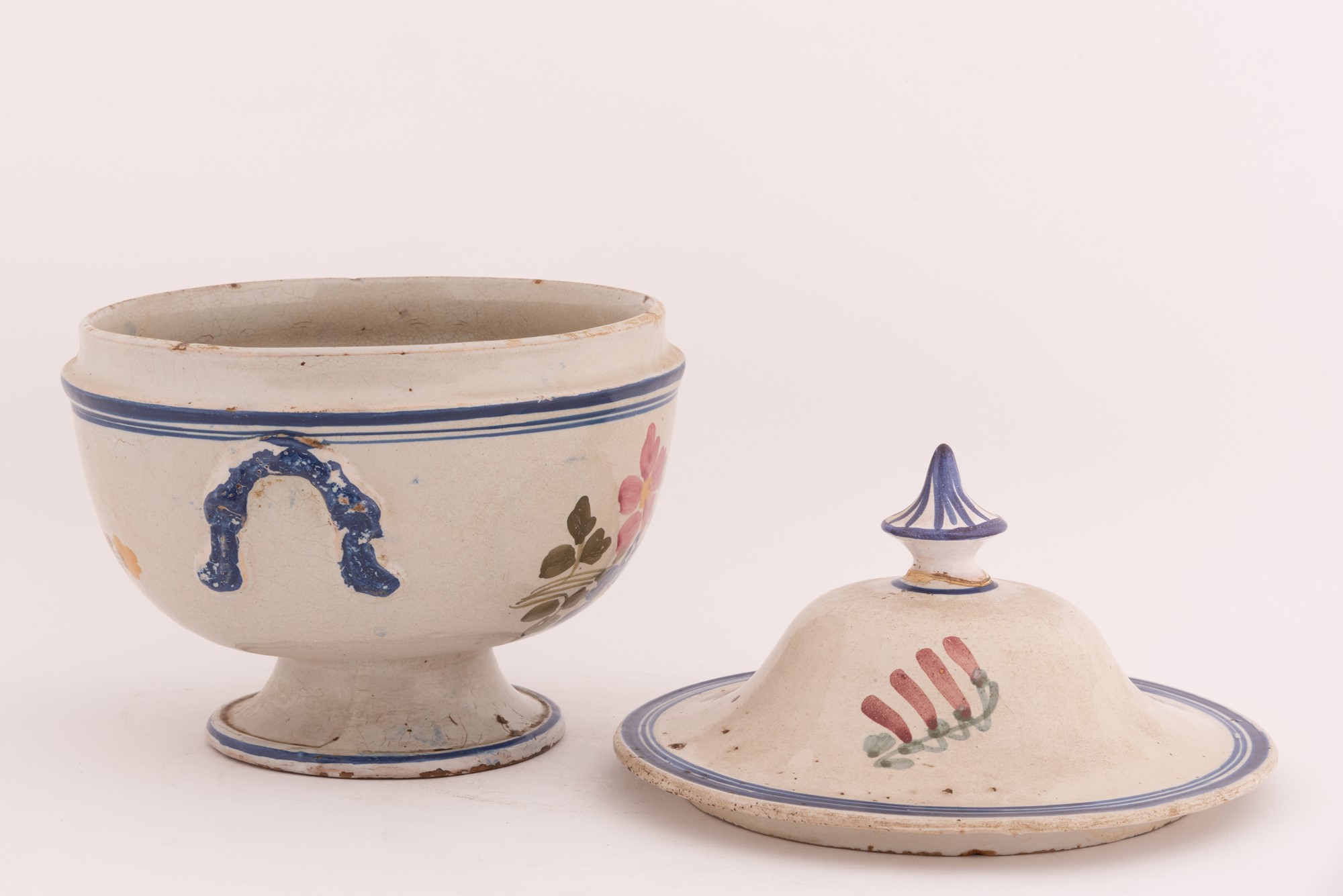 Manifattura castellana del XIX secolo ( - ) Zuppiera in maiolica decorata in policromia con decorazione floreale e bordature in blu con coperchio cm 28x22; senza coperchio cm 17x22
