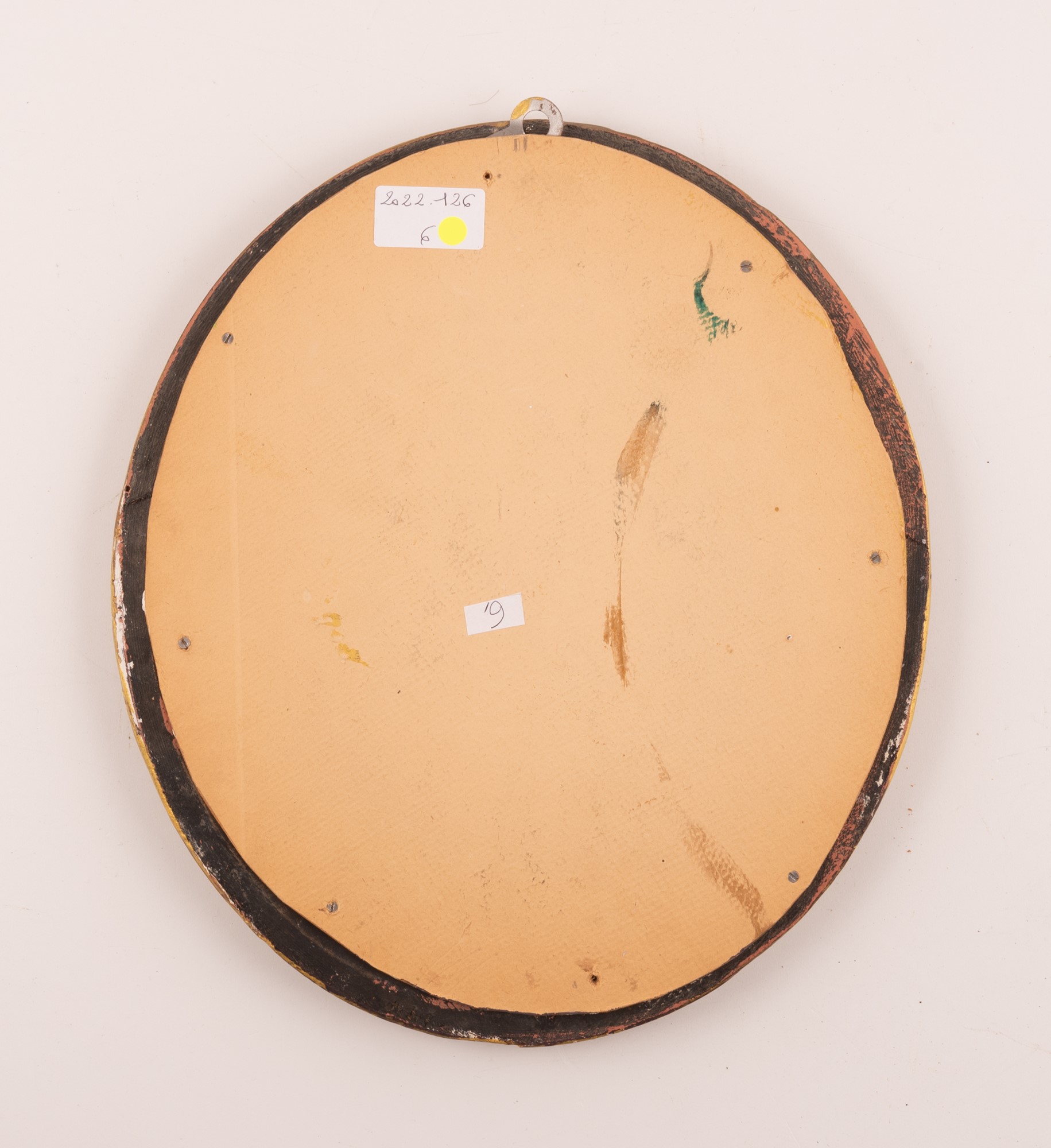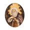 Mattonella maiolicata ovale decorata con l'effigie di Sant'Antonio Abate. cm 20x16
