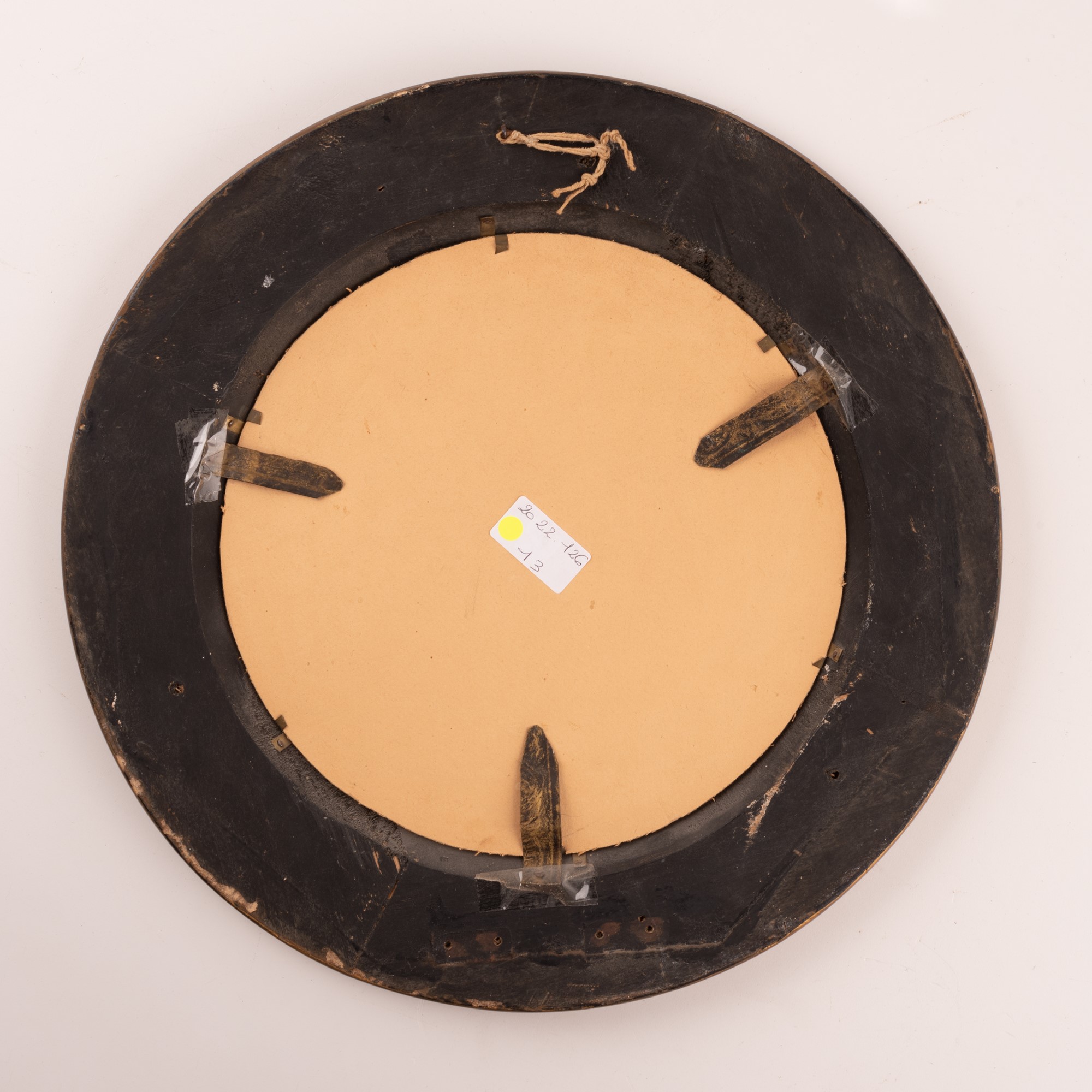 Tondo in maiolica raffigurante la Madonna del Rosario tra i Santi Domenico di Guzman e Caterina da Siena. Ø cm 23