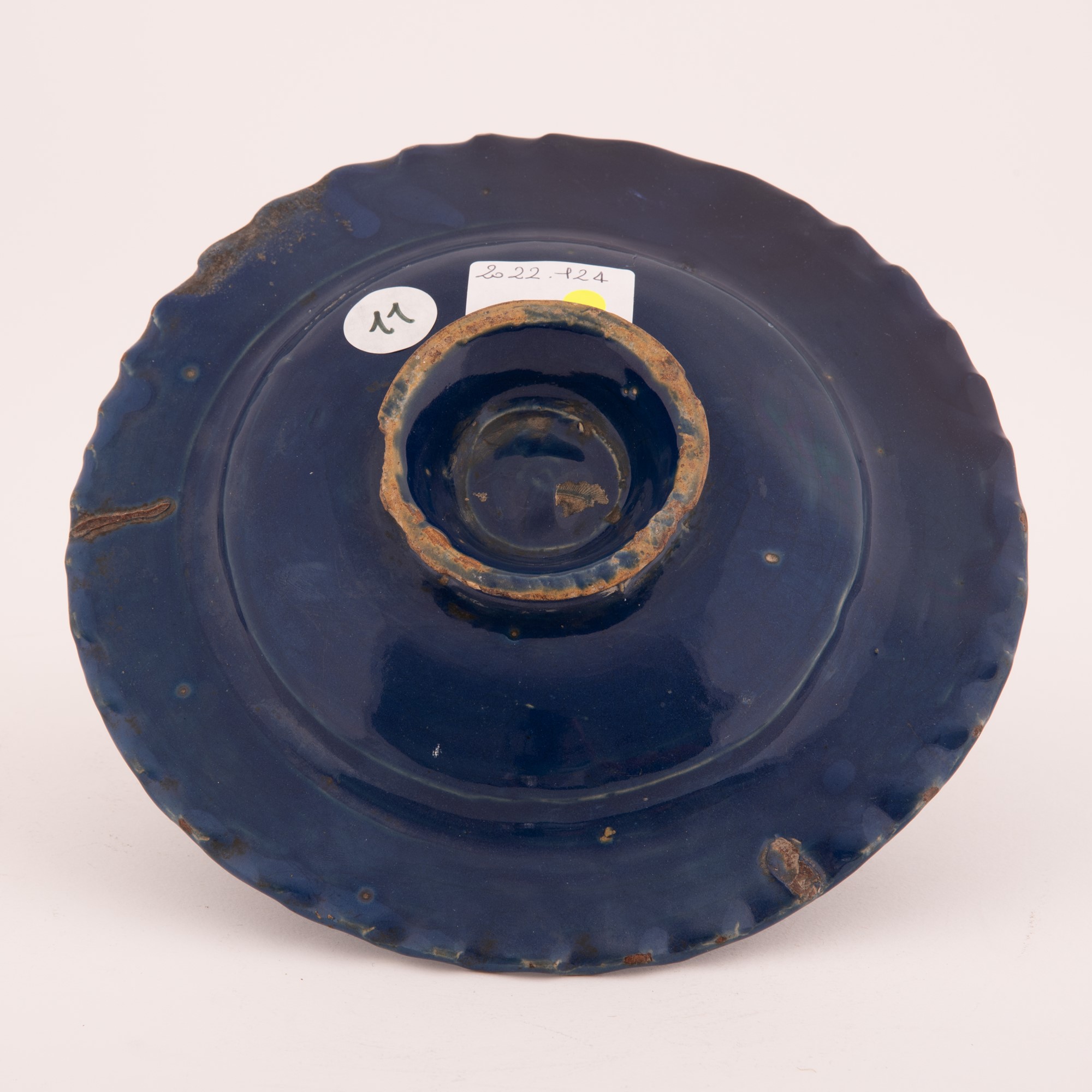 Bottega di Orazio Pompei, Castelli, fine XVI secolo ( - ) Crespina turchina in maiolica Ø cm 21,5; altezza cm 3,5
