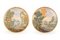 Coppia di tondi in maiolica decorata in policromia con paesaggi e rovine animati da personaggi. Filettatura in giallo sul bordo. Ø cm 24 Uno dei due tondi presenta frattura