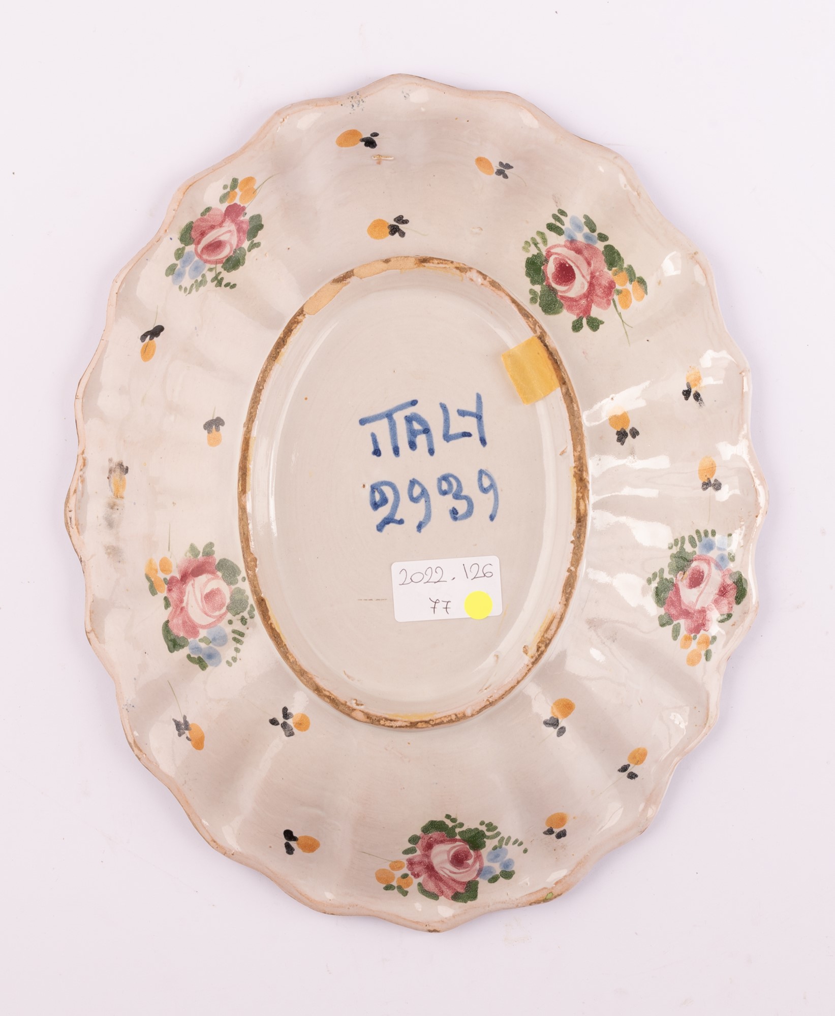 Vassoio in maiolica decorato mazzetti di fiori sparsi ed un uccellino cm 5x25,5x31