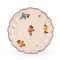 Vassoio nuziale in maiolica di forma lobata decorato in policromia con fiori colorati e doppi anelli nuziali beneauguranti. Ø cm 32