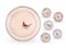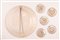 Grande piatto da portata e 5 piattini in maiolica a fondo bianco decorati in policromia. Al centro del cavetto figura di uccello. Ø cm 37,5; Ø cm 10,5