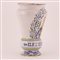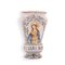Albarello in maiolica decorato con l'effigie di una Santa Martire racchiusa in una ghirlandina compendiaria. cm 23,2x13 XX secolo Iscrizioni:E(le) T (tuario). SUCC (o) . ROSA. in caratteri capitali.