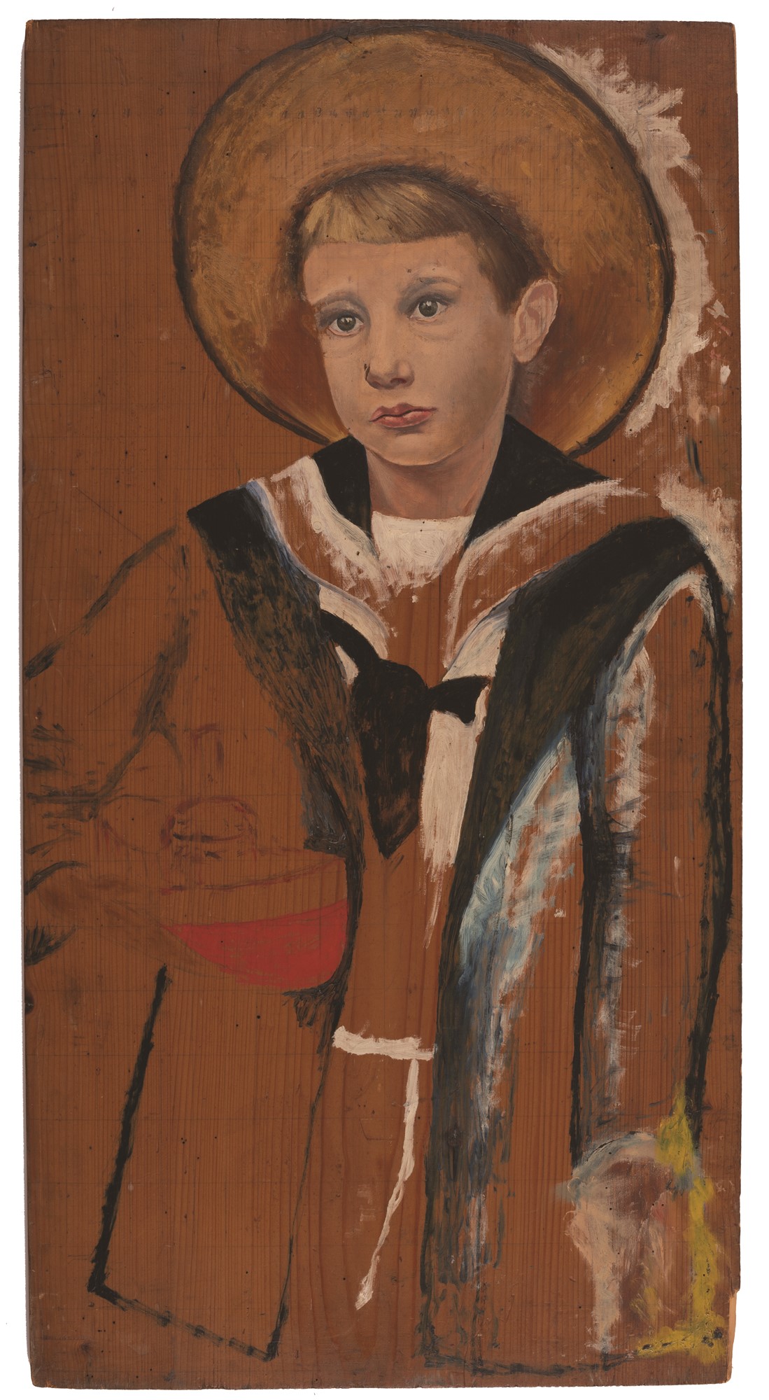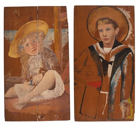 Coppia di dipinti ad olio su tavola. Ritratti di famiglia.
