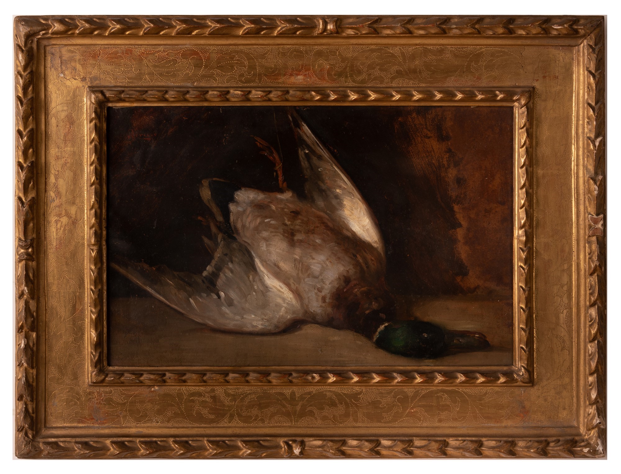 Giacomo Grosso (1860 - Torino, 1938) Germano reale olio su cartone cm 37x55