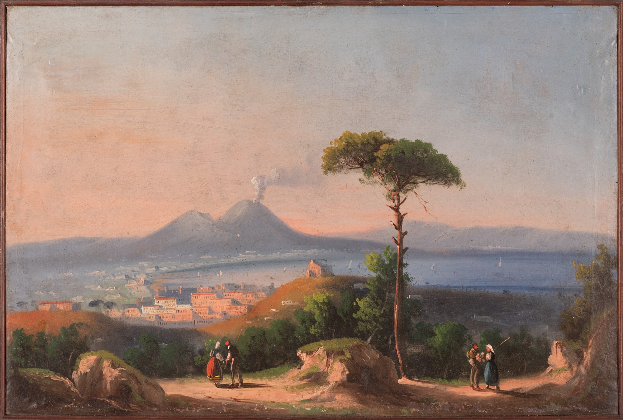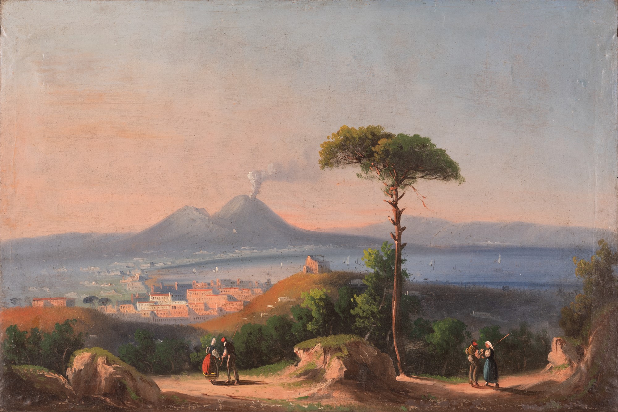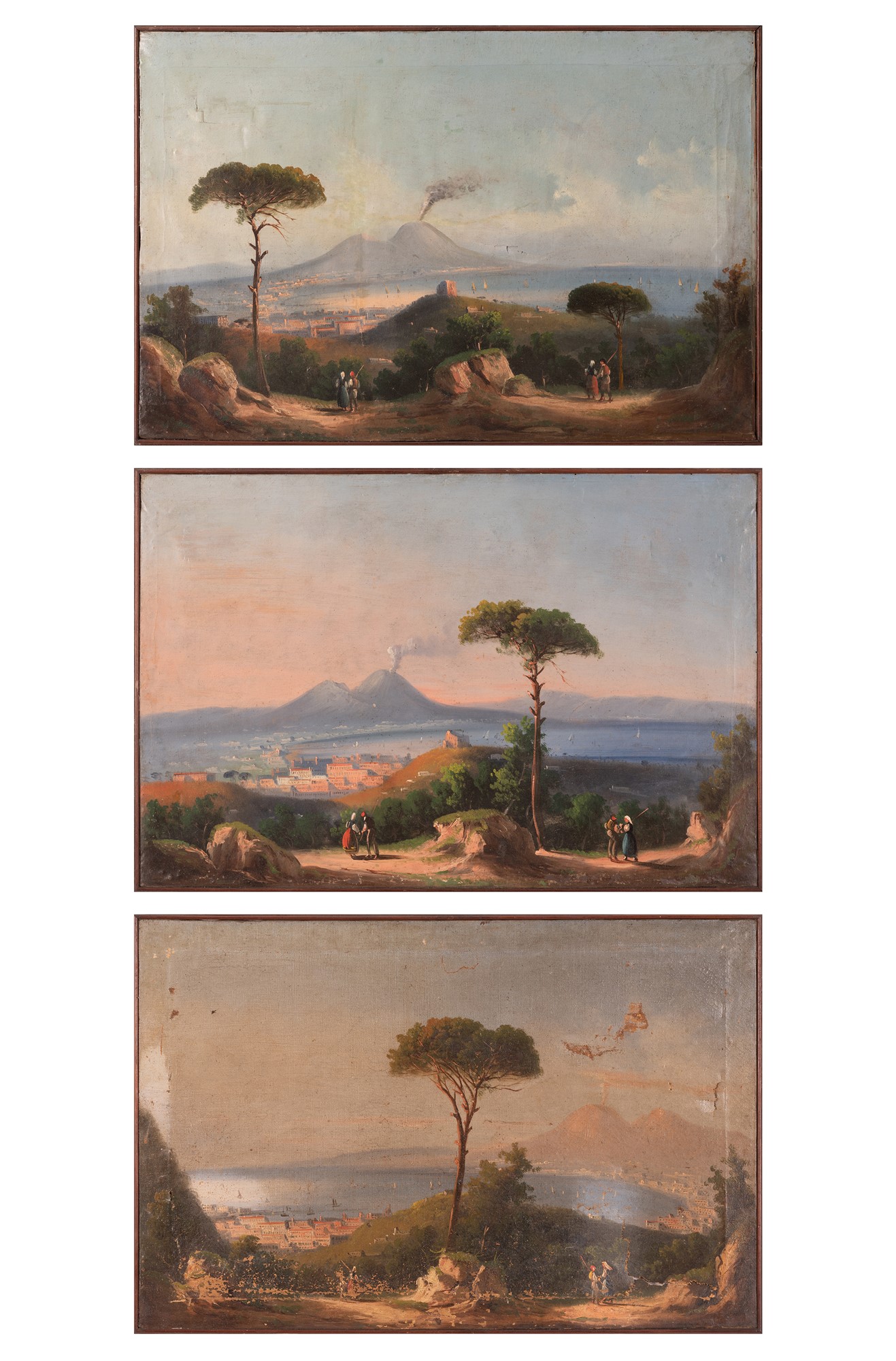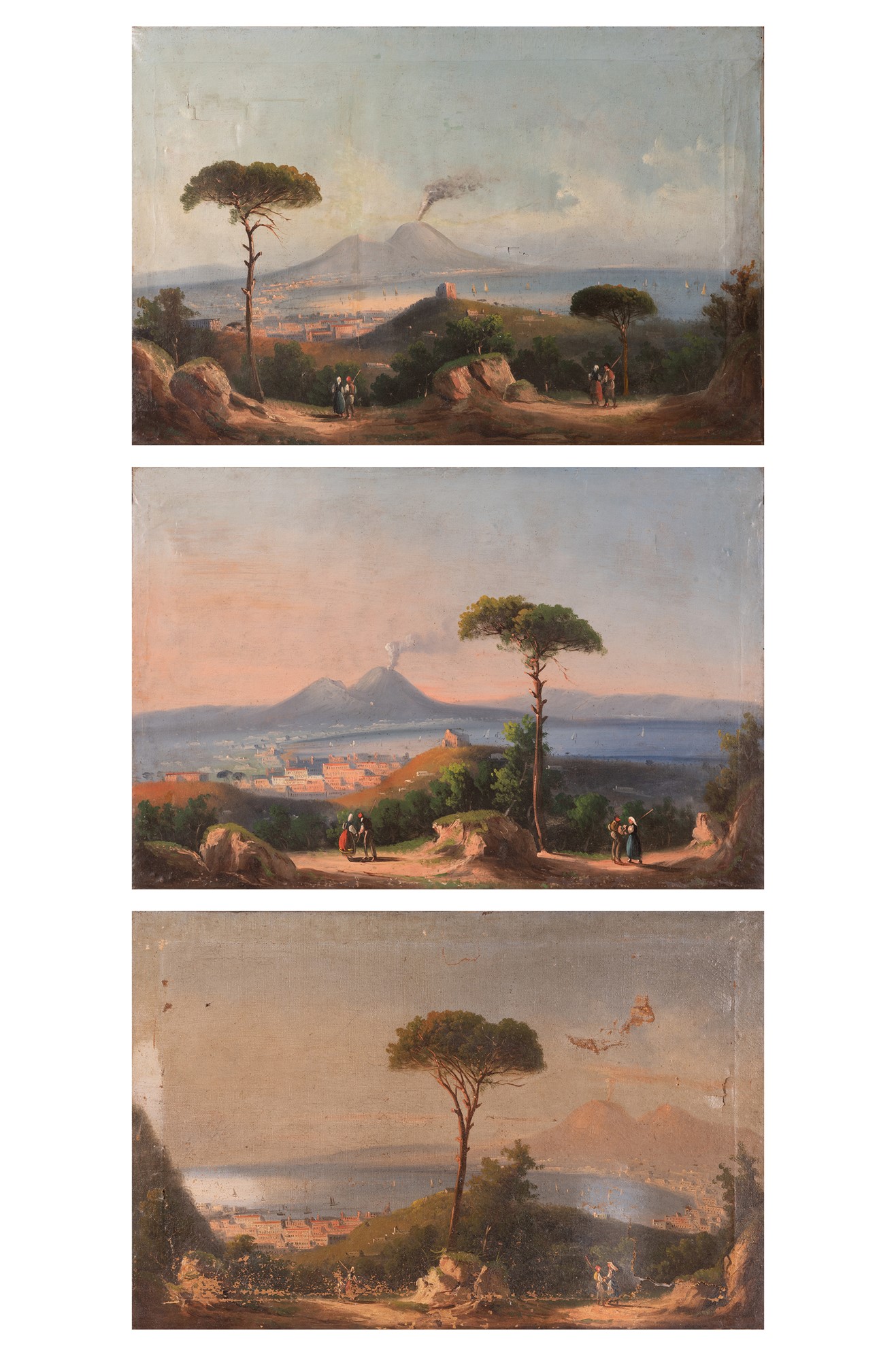 Lotto di tre vedute del golfo di Napoli con Vesuvio