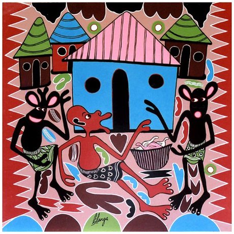GEORGE LILANGA Kikwetu (Tanzania) 1934 – Dar es Salaam (Tanzania) 2005 Wanaulizana kwamba hili duka litafunguliwa leo ? Olio su faesite 61 x 61. Firma in b. al c.; titolo sul verso. Autentica galleria Rosenfend, Bad Kissingen su foto. Pubbl.: “George Lilanga”, cat. mostra a cura di Silvio Guarasci, Saletta Viviani, Pisa, 10 giugno – 30 luglio 2006, p.58.