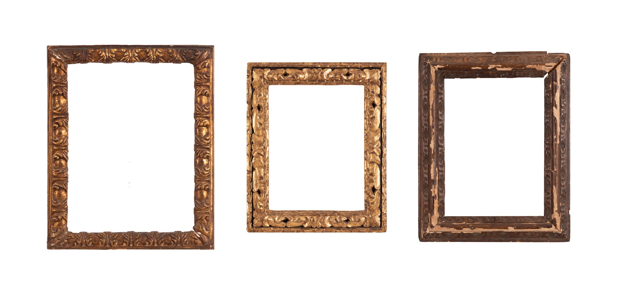 Lotto di 3 cornici in legno dorato XVIII secolo