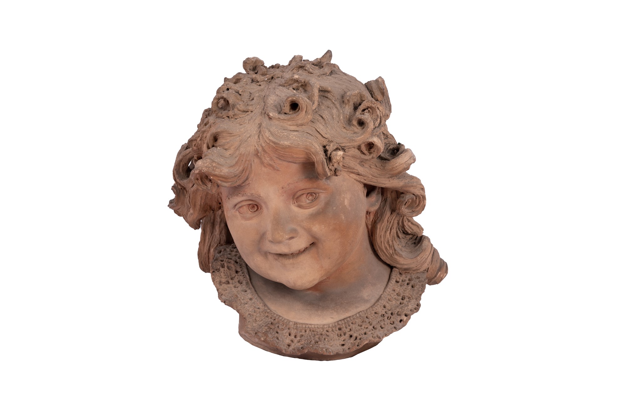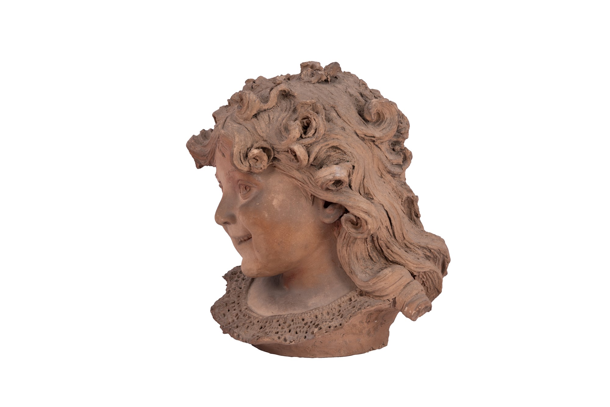 Scultura raffigurante testa di fanciulla con colletto in merletto