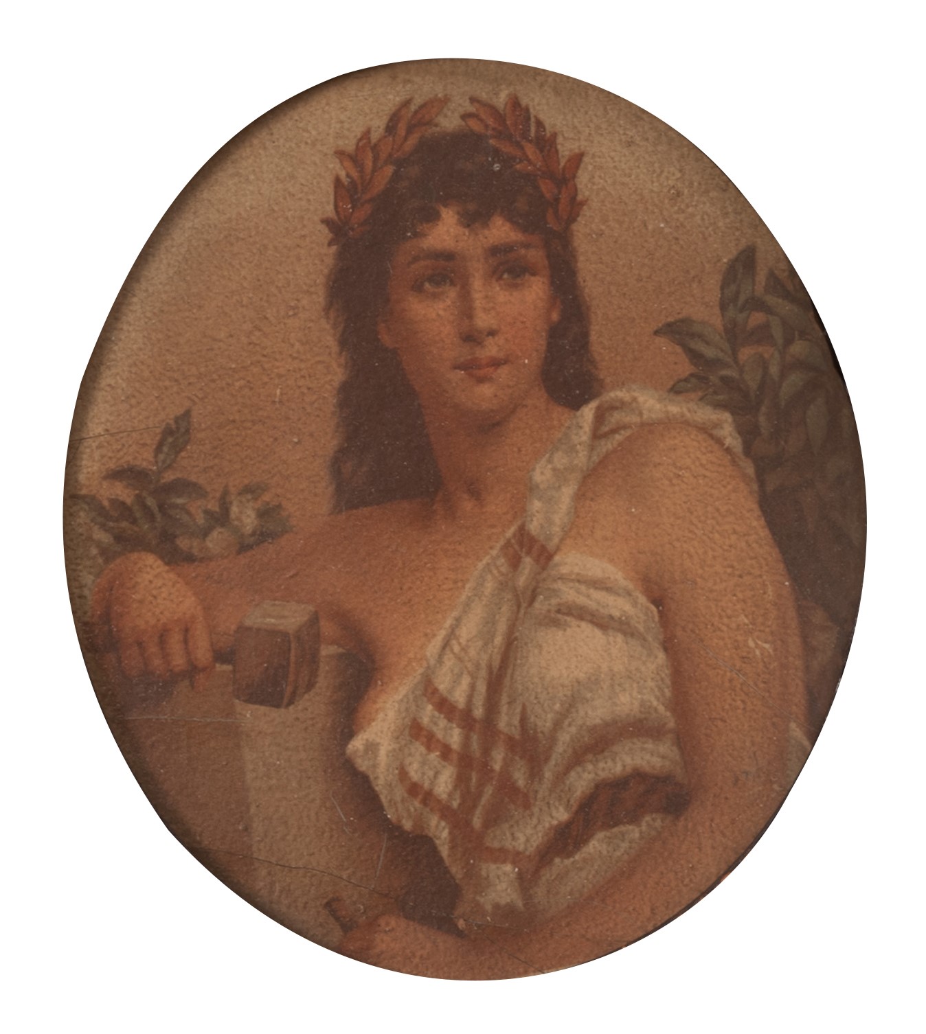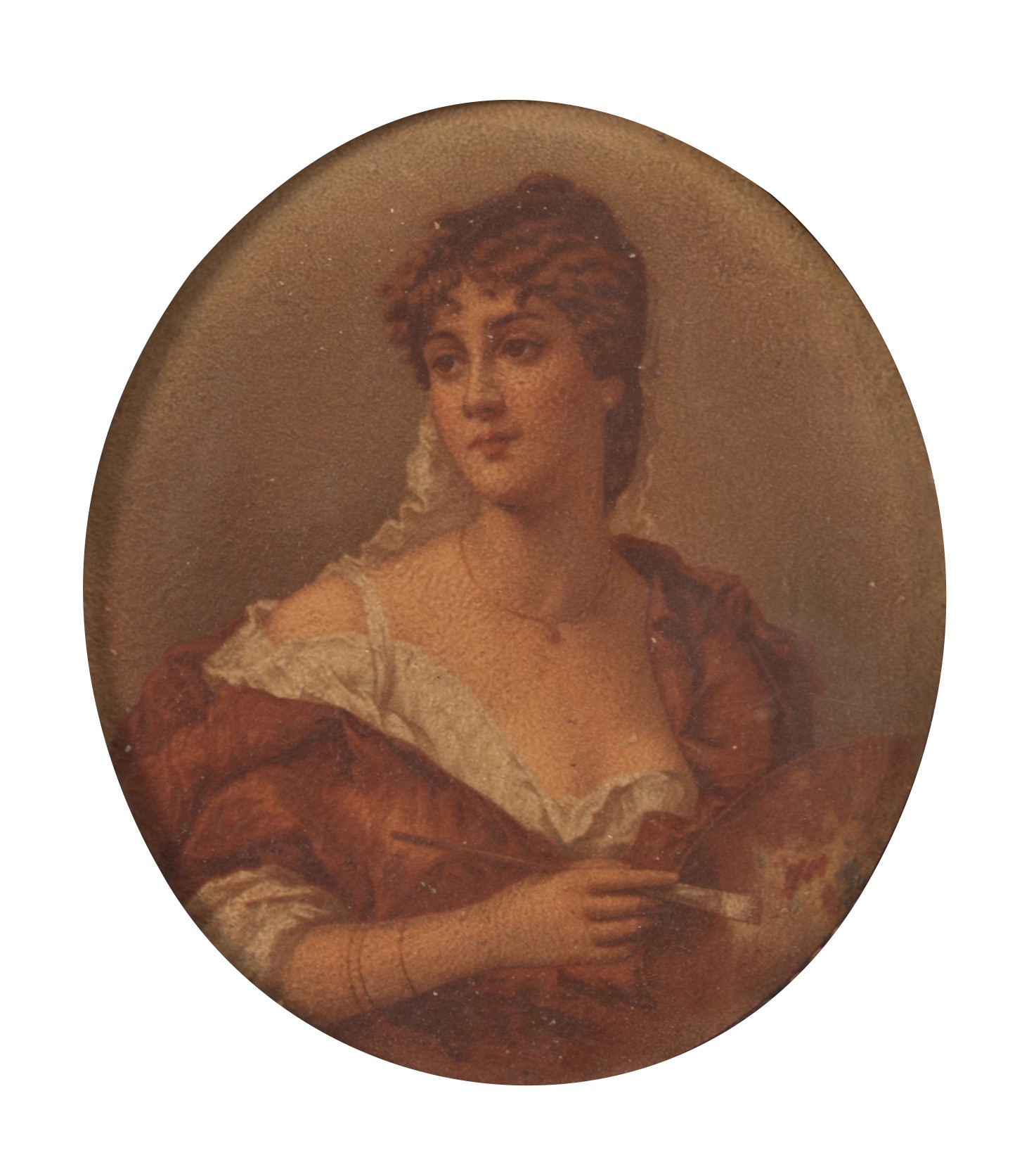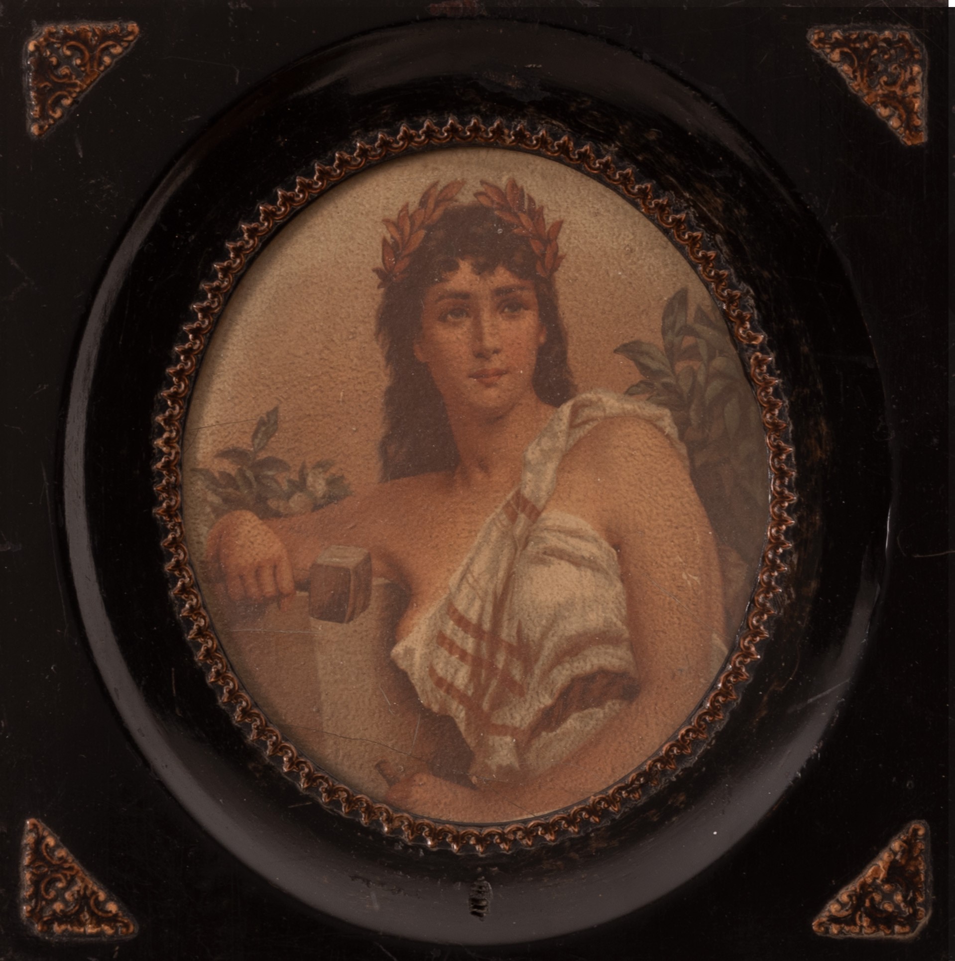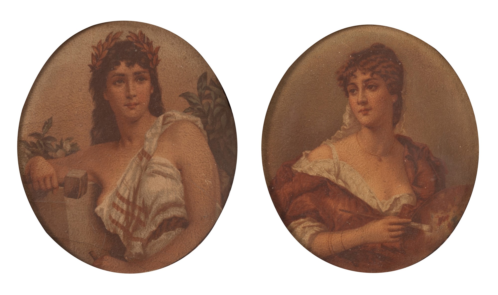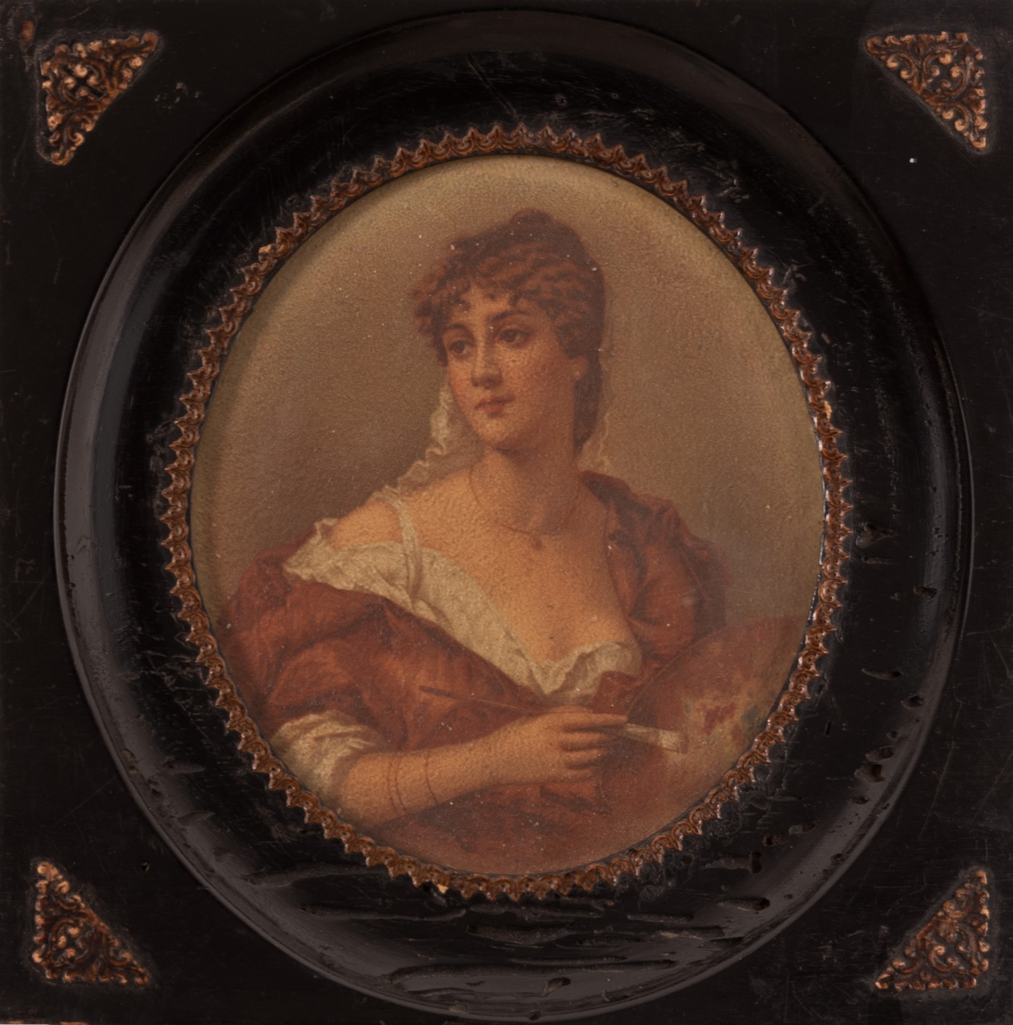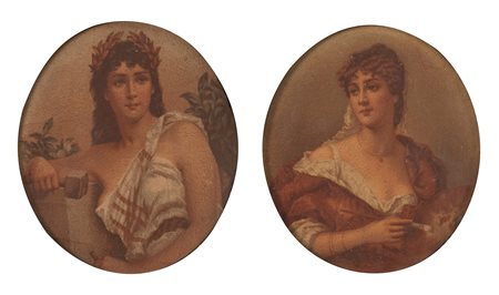 Scuola francese del XX secolo ( - ) Coppia di ritratti femminili in cornice ebanizzata coeva cm 14x13