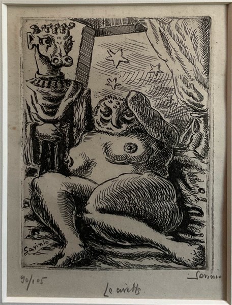 Alberto Savinio "La civetta" 1944 acquaforte Lastra cm 17x11 firmata in lastra i