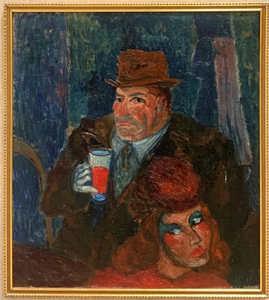 Aligi Sassu "Il punch" 1941 olio su cartone cm 33x29,5 firmato in basso a destra