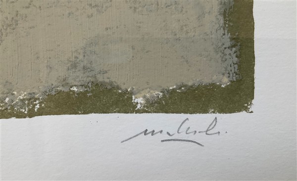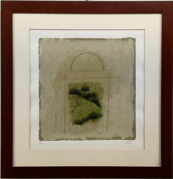 Carlo Mattioli "Paesaggio con albero e lunetta" serigrafia a colori cm 41x40 fi