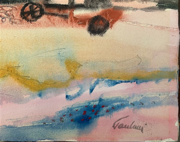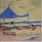 Enrico Paulucci "Tendone blu" 1977 guazza su carta cm 34,9x50 firmato in basso a