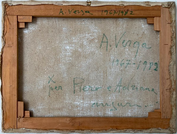 Angelo Verga "Senza titolo" 1967 - 1982 olio su tela cm 35x45 firmato, datato e