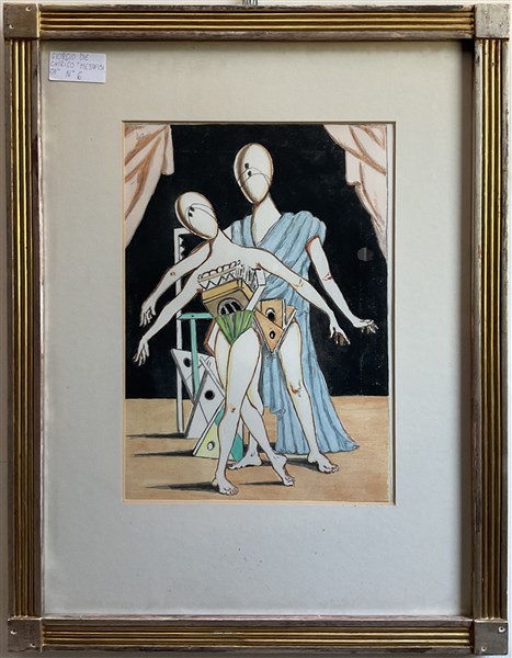 Giorgio de Chirico "I ballerini" 1970 litografia ritoccata a mano cm 69,5x50 fir