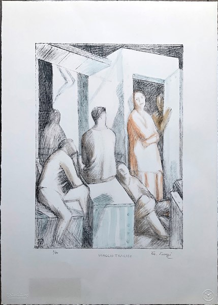 Ferruccio Ferrazzi "Viaggio tragico" 1976 litografia a colori cm 66x46 firmata e