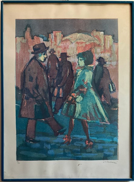 Mino Maccari "Senza titolo" xilografia a colori cm 68x50 firmata e numerata 85/