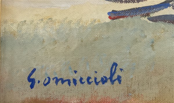 Lotto 1212 | Giovanni Omiccioli "Cantiere navale a Scilla" olio su cartone telato cm 45x55 f