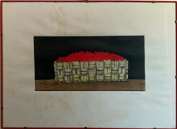 Bruno Caruso "Senza titolo" acquaforte e acquatinta a colori (lastra cm 22x45;