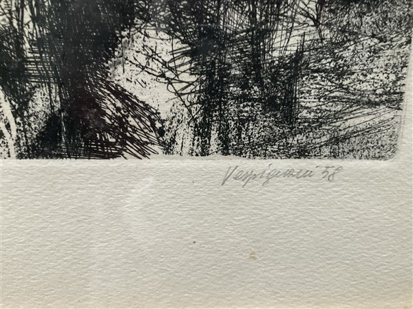Renzo Vespignani Un'acquaforte del '58 e una litografia di soggetti diversi fogl