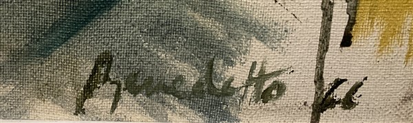 firmato e datato in basso a destra; firmato, titolato e iscritto al retro (lievi difetti)