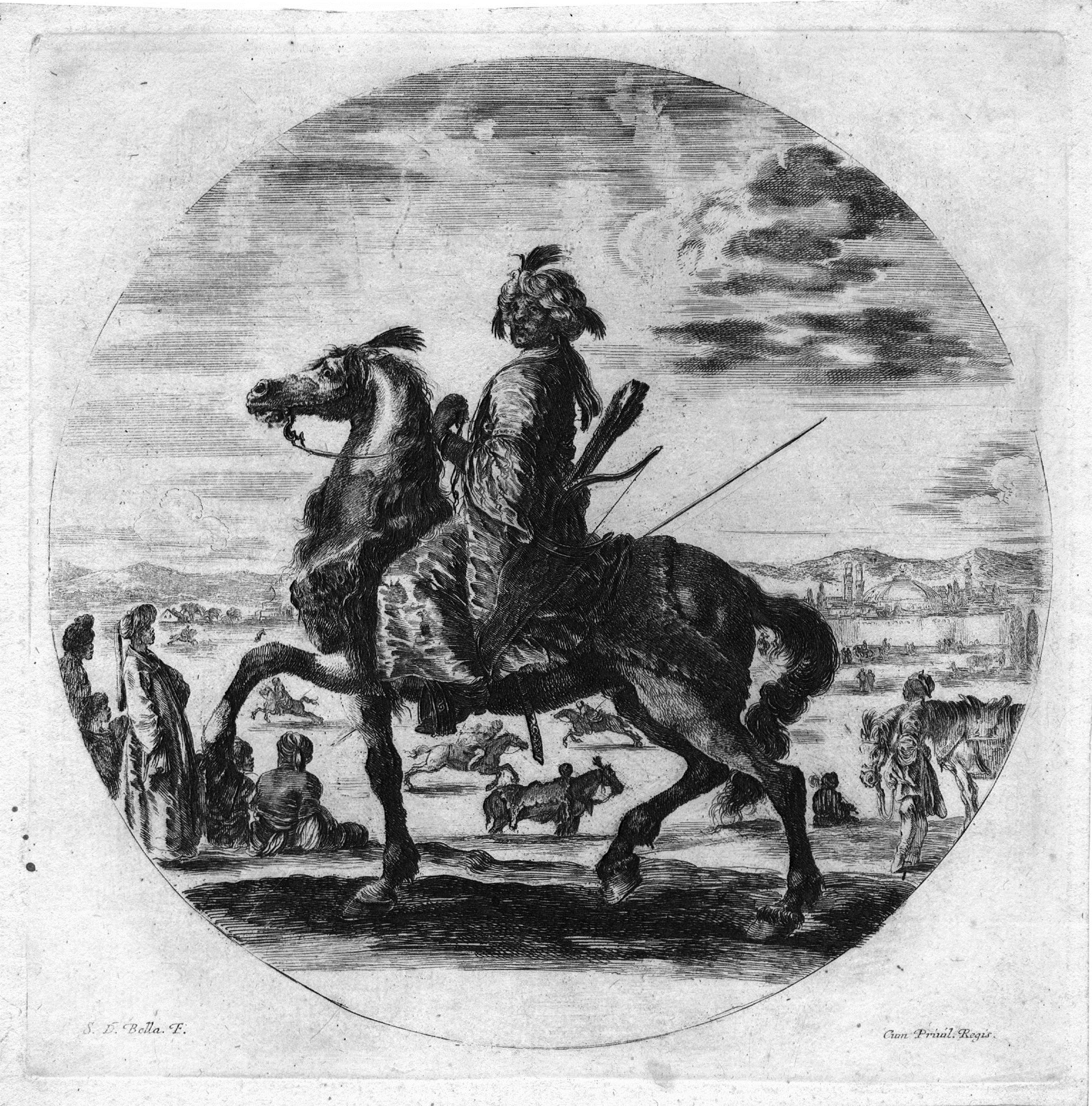 Della Bella, Stefano(Firenze 1610 - 1664)CAVALIERE CON TURBANTE DIRETTO VERSO...