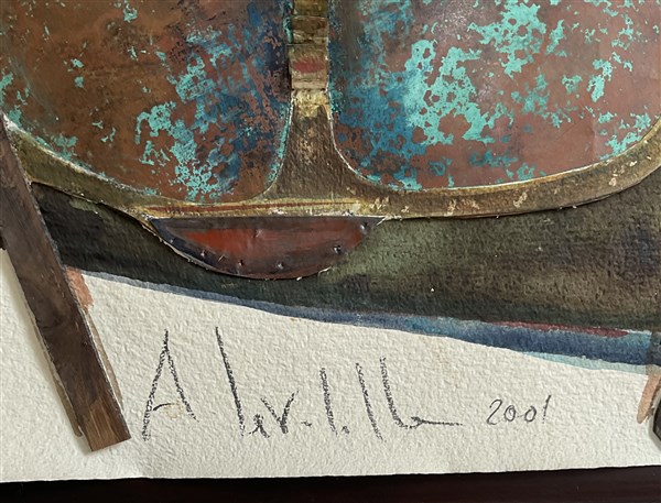 Antonio Ievolella "La festa" 2001 legno, collage e tecnica mista su carta cm 76x