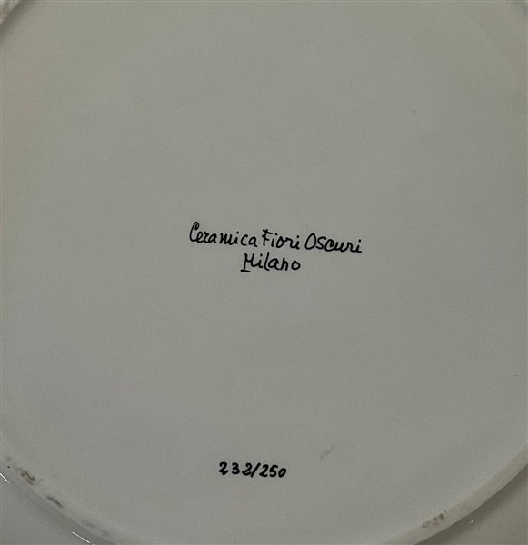 Piatto in ceramica serigrafata. Ceramica Fiori Oscuri, Milano. Numerato 232/250