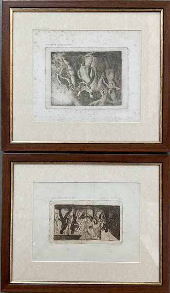 due acqueforti (lastre cm 10,5x25 e 15x19,5)