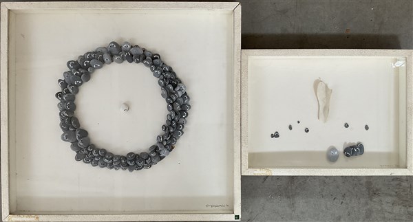 Firma indecifrata "Senza titolo" due assemblage su tavoletta cm 45x49 e cm 25x3