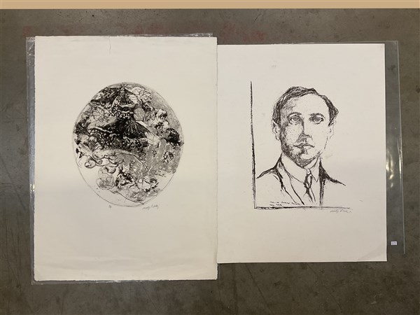 Lotto composto da un'acquaforte e una litografia di soggetti e misure diverse (fogli cm 63x47 e cm 70x50) firmate in basso a destra a matita