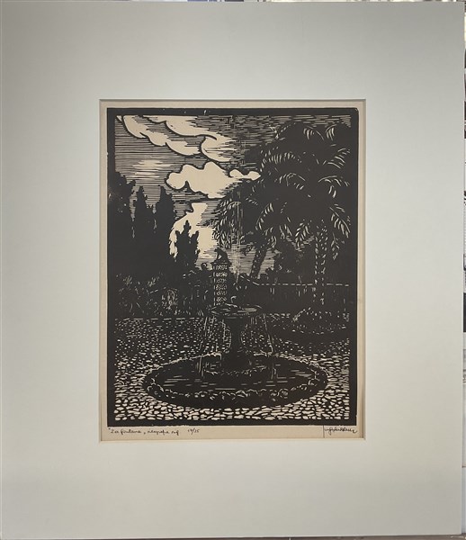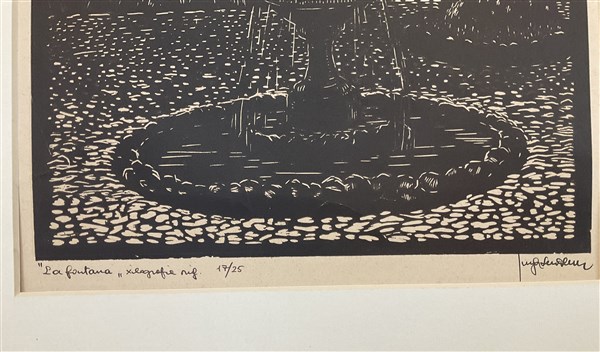 Luigi Servolini "La fontana" xilografia cm 50,5x42,5 firmata, titolata e numera