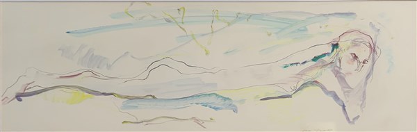 Ernesto Treccani "Nudo sdraiato" acquerello su carta cm 32,5x100 firmato in bas