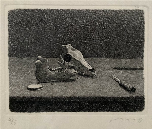 Gianfranco Ferroni "Cranio di maiale" 1979 acquaforte (lastra cm 12x14,5; foglio