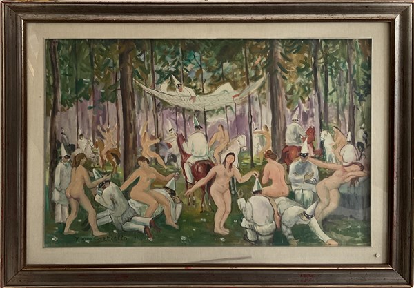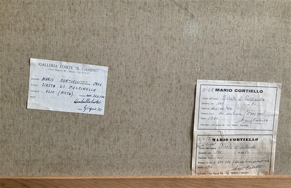 Mario Cortiello "Siesta di Pulcinella" 1966 olio su tela cm 70x100 firmato e dat