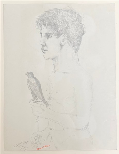 Bruno Caruso "Ritratto di uomo con falco" matita su carta cm 42x32 firmato e de