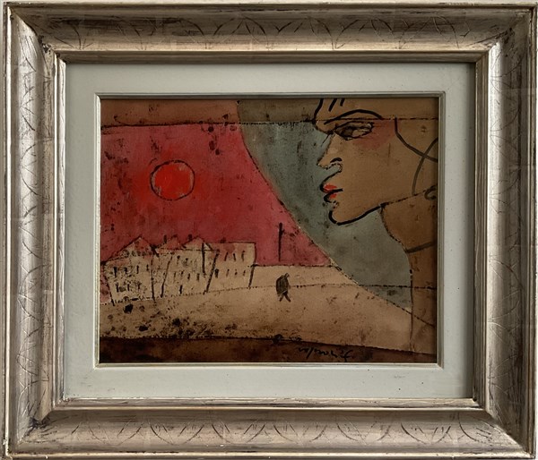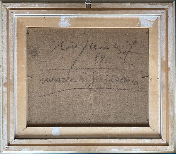 Franco Rognoni "Ragazza in periferia" 1989 tecnica mista su masonite cm 32,5x41,