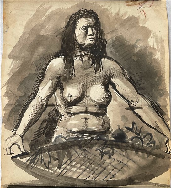 Lotto composto da tre disegni a tecnica mista raffiguranti nudi di misure diver