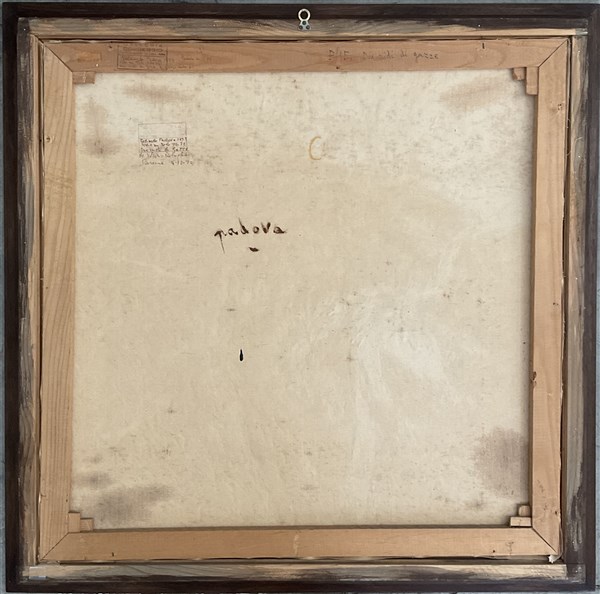 firmato in basso a destra, firmato al retro. In cornice (difetti)