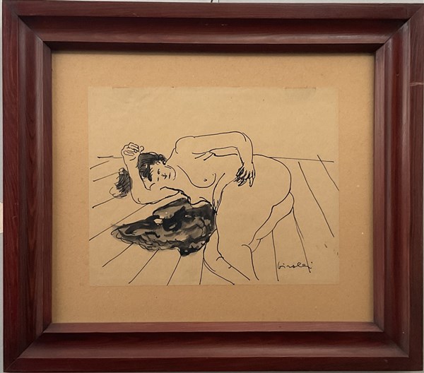 Lotto 1534 | Firma indecifrata "Senza titolo" china su carta applicata su cartone cm 22x28 f