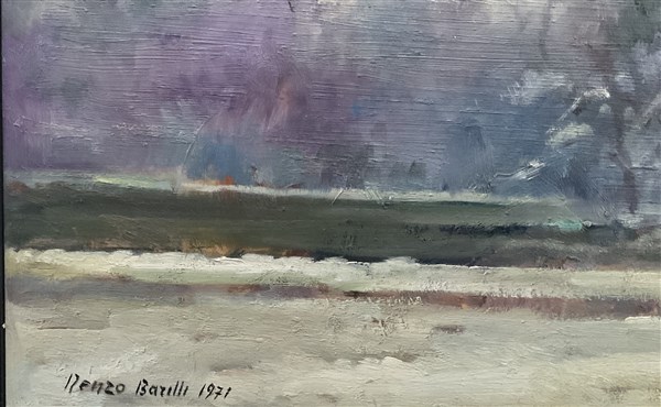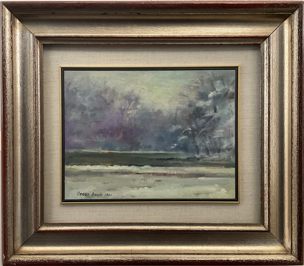 Renzo Barilli "Senza titolo" 1971 olio su compensato cm 21x28 firmato e datato i