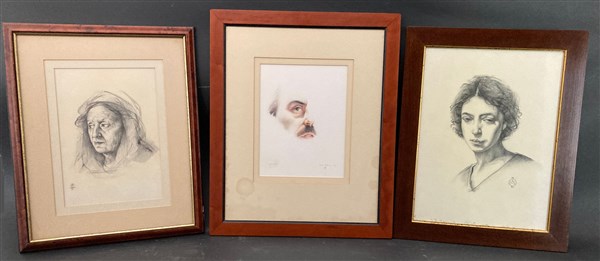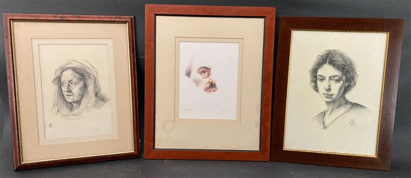 Lotto di tre disegni a matita: un autoritratto e due ritratti femminili,, misure differenti (misura max cm 44x33) siglati e datati in basso a matita