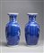 Cina, XX secolo. . Cm 15,00 x 47,00. Due vasi a balaustro con decoro di rami di pesco in fiore su fondo blu.