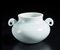 Cina, XX secolo . . Cm 19,00 x 11,50. Vaso con ampia pancia e collo cilindrico, interamente ricoperto di invetriatura celadon. Doppia ansa zoomorfa in forma di teste di elefante e marchio Kangxi a sei caratteri sulla base.