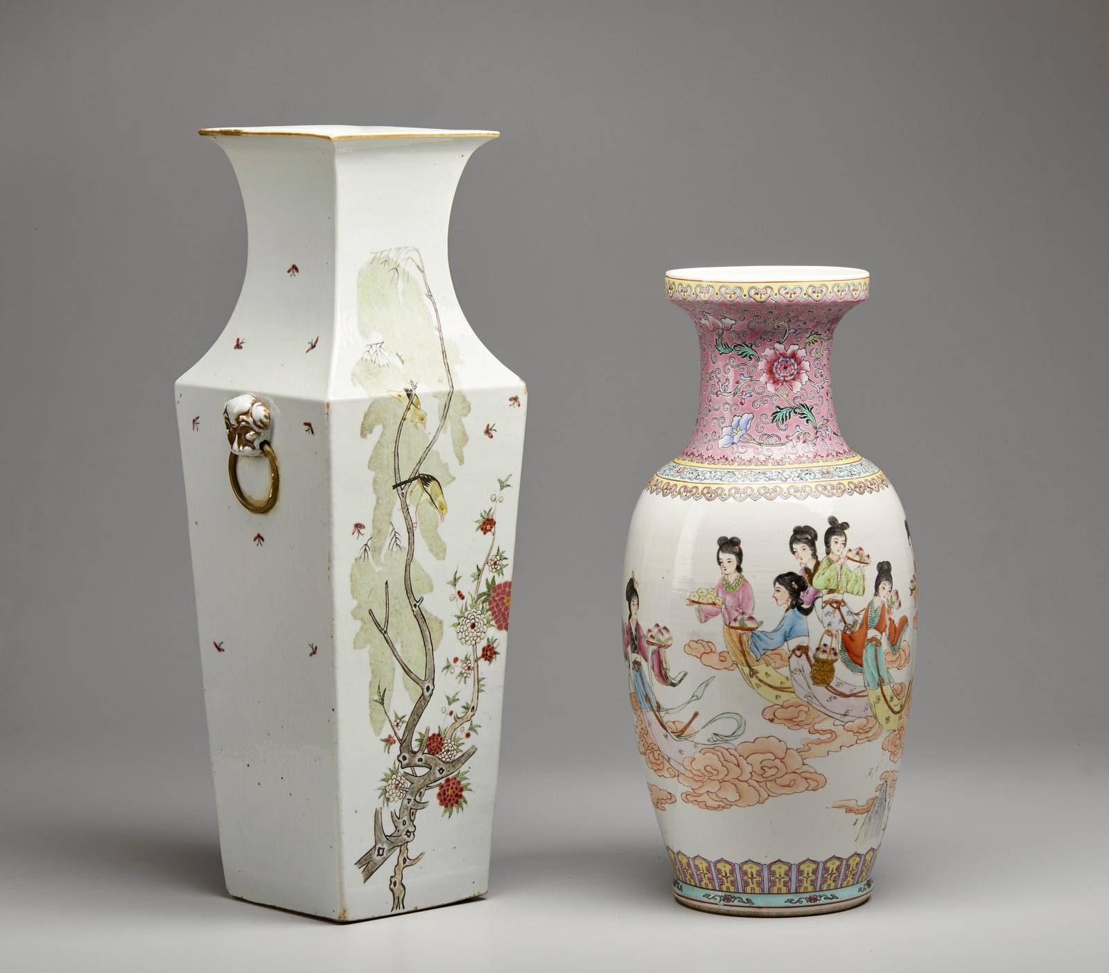 Arte Cinese - Lotto composto da due vasi in porcellana famiglia rosa Cina, prima metà XX secolo .